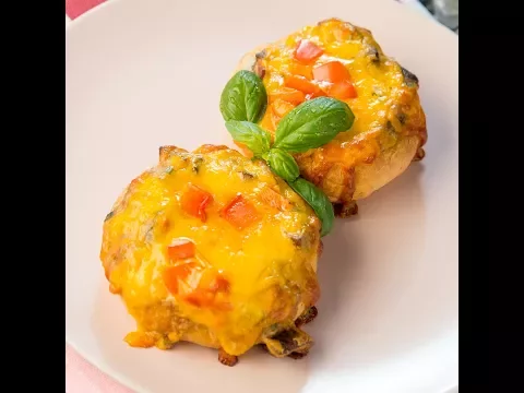- Top them with the mushroom mixture, shredded Cheddar and diced bell pepper.