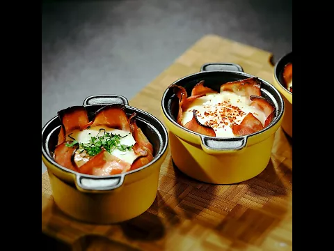 - Use 3 ramekins. Line the inside of each ramekin with 4 bacon slices, in a flower pattern.
