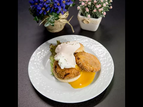 - Serve 2 patties and one poached egg with one burger bun. Top with one tablespoon of yogurt and tabasco sauce, then garnish with fresh thyme.