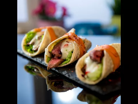 - Thinly slice the beef. Top the tortilla with lettuce and cabbage. Add the beef and wasabi mayo.