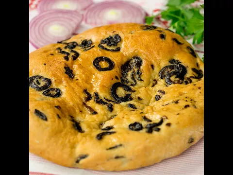 - Dust some flour on your working surface and knead the dough for 1-2 minutes. Stretch it by gently pressing the edges with your fingers. Top it with the sliced olives.