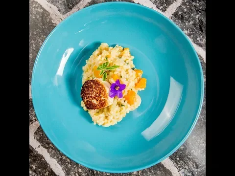 - Cook it until golden and crispy. Serve it on top of the butternut squash risotto.