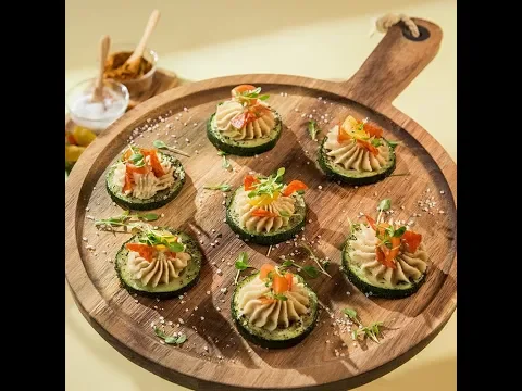 - To serve, top the baked zucchini slices with the cashew cheese, chopped pepperoni, and tomatoes. Season with sea salt and pepper if you want.