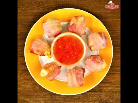 - Wrap each puff pastry ball in a slice of bacon.