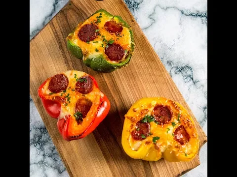 - Add 1 teaspoon of tomato sauce inside each bell pepper. Top them with mozzarella, parmesan, and chorizo.