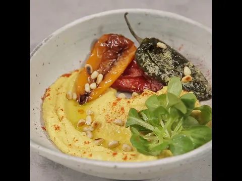 - Serve the roasted chilies over chickpea puree.