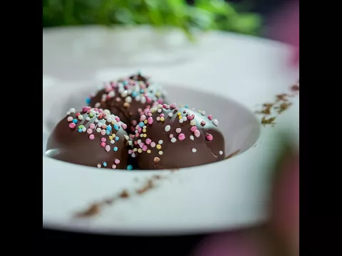 - Slide each ball on top of a wooden sticks. Coat them with melted chocolate and decorate them with a colored sprinkles.
