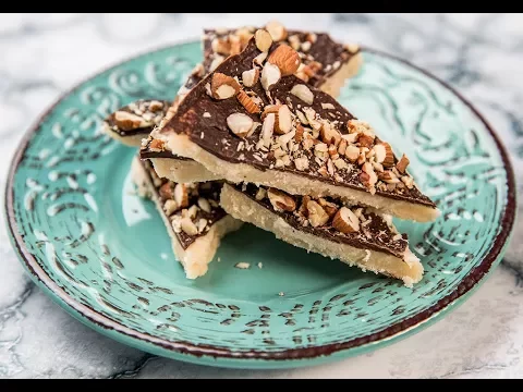 - Sprinkle the crushed almonds and pecans on top of the toffee.