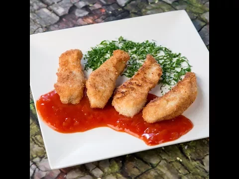 - Coat the thinly sliced chicken with flour, whisked egg, and coconut flakes.