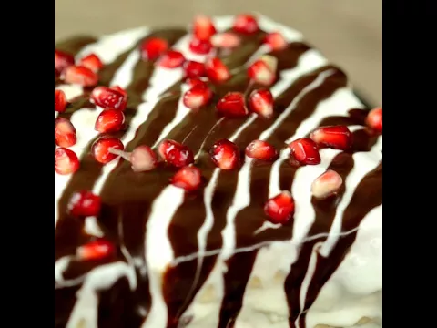 - Pour chocolate sauce and sprinkle pomegranate seeds on top.