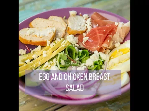 - Add the sliced chicken breast, boiled egg, onion, avocado, and prosciutto. Crumble feta cheese on top.