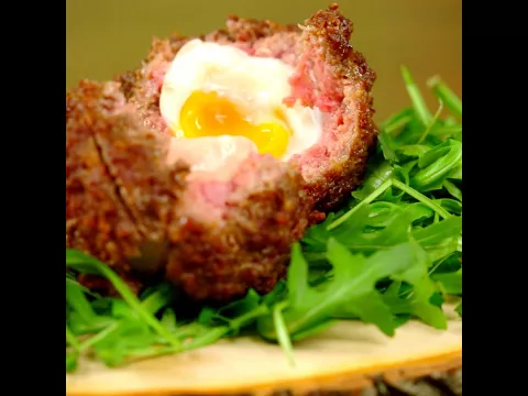 - With your hands, form 6 meatballs by putting in their middle the soft-boiled eggs.