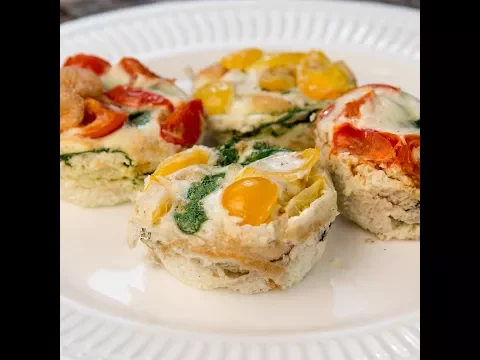 6 egg whites salt pepper 2 ounces of baby spinach 4 cherry tomatoes 1 onion, choppedHow to Make Egg White Cups With Spinach and Tomato