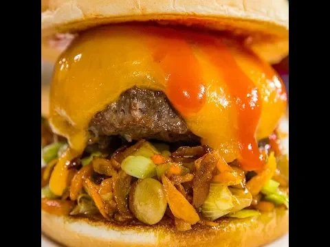 - Add the enoki-carrots mixture together with the meat and cheese between the two halves of each burger bun.