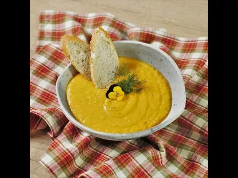- Pour 1/2 cup of vegetable stock over them, season with dill, salt, and pepper. Puree everything.