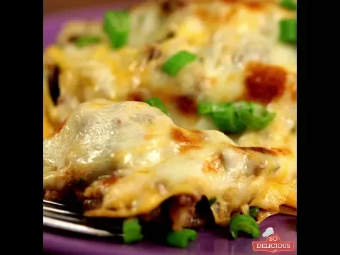 - Cover the meat mixture with grated Cheddar cheese. Add grated mozzarella all over.