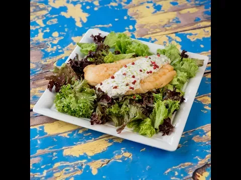 - Top the fish with the yogurt dressing and serve!