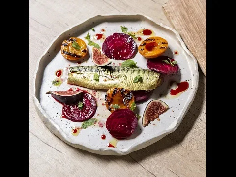 - Transfer on a plate and serve with figs and smoked mackerel. Drizzle all with the pomegranate sauce.