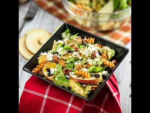 - Add the cooked fusilli in a large bowl. Add the salad, celery, pecan nuts, blueberries, apple, and orange slices.