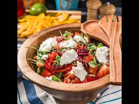 - Add the arugula, tomatoes, canned red beans, fresh mint, dried basil, salt, pepper, olive oil, and squeeze lemon juice. Combine everything using 2 spatulas.