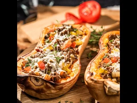 - Stuff the butternut squash halves with the beef mixture and top with grated parmesan.