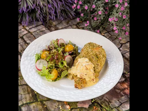 - Serve the herb crusted chicken breasts with cheese sauce and, if you want, some salad.