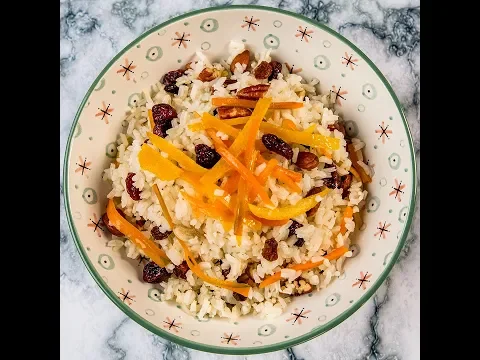 - Take the rice out of the oven and add it in a large bowl. Add the toasted nuts and fruits, and orange peel.