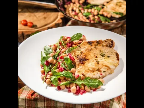 - Combine the arugula leaves with cooked chickpeas and serve the salad with pork chops.
