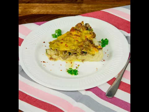 - Top the casserole with shredded Cheddar cheese and bake it for 40-50 minutes.