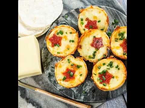 - Spray the cups of a 6-cup muffin pan with vegetable oil. Fit the 6 tortilla discs into the cups, fill with the marinara mixture and top with grated mozzarella and salami. You can cut the salami slices further into various shapes if you want.