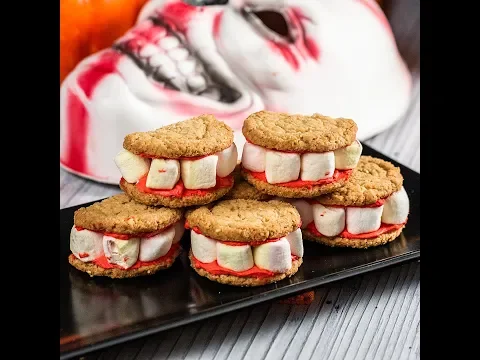 - Top the marshmallows with 1 more biscuit. That way you will obtain a monster mouth.