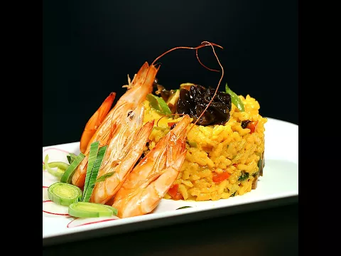 - Use some cooking rings to make your mushroom rice look like a risotto. Serve with the risotto with the king prawns on top!