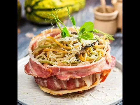 How to Make Mushroom Spaghetti in Bacon Nest