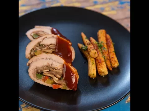 - Serve the stuffed pork rolls with barbecue sauce and sweet baby corn.