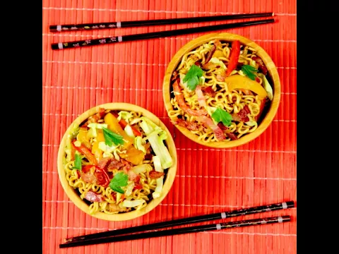 How to Make Noodle Bacon and Bell Pepper Stir-Fry