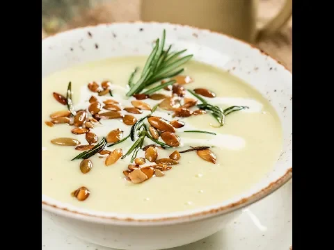 - Serve the soup garnished with fried pumpkin seeds. Optionally add some heavy cream, too.