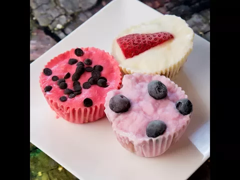 - Split the strawberry yogurt between 2 muffins. Repeat with the other types of yogurt.