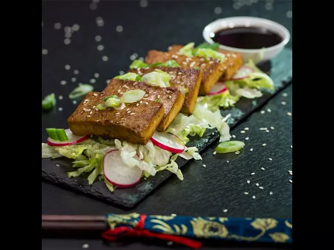 - Place the tofu on your working surface and slice it about 0.4 inches (1 cm) thick.