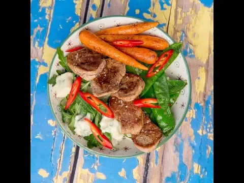 - Top it with the cooked carrots and green beans, arugula, and fried pork neck.