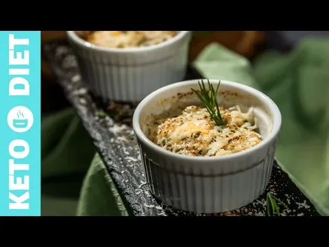 - Remove from oven and add to each ramekin 1 egg. Top with the parmesan mixture and bake for 10 minutes at 360⁰F/180⁰C.