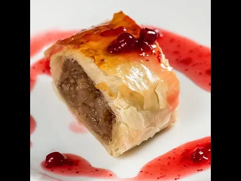 - Coat 1 phyllo sheet with vegetable oil using a brush, then add 2 more on top of it and do the same. Add about 1/2 of the pear mixture on the lower part of the phyllo pastry stack and wrap. Do the same with the other 3 phyllo sheets and the remaining pear mixture.