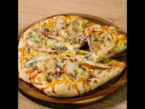 - Top it with grated mozzarella, blue cheese, pear wedges, and walnuts.