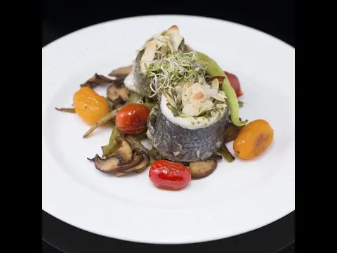 - When everything is ready, place the veggies on a plate and top them with the sea bream rolls!