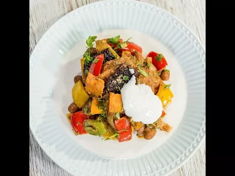 - Continue by adding the sun-dried tomatoes, red and yellow bell peppers, while cooking and stirring for 2-3 minutes. Add the yogurt, the cooked potatoes, canned red beans, and cheddar, season with salt, and cook and stir for 2-3 minutes more.