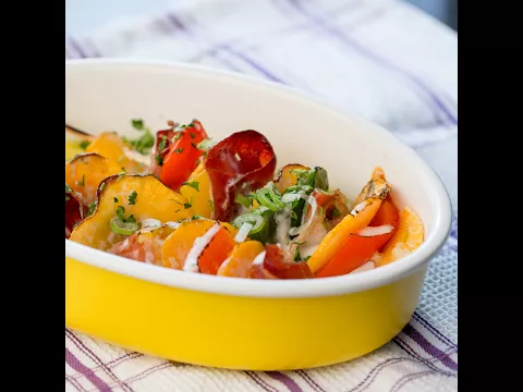4 prosciuttos slices ½ red bell pepper, sliced ½ yellow bell pepper, sliced 0.5 green bell pepper, sliced 3 ounces of mozzarella, thinly sliced 1 tablespoon olive oil 1 teaspoon pepper saltHow to Make Prosciutto and Sweet Potato Skewers