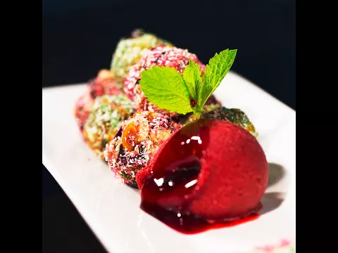 - Divide in 2 small bowls the coconut flakes. Add 2 drops of red food coloring and 2 drops of green food coloring in each bowl. Mix well to color the coconut flakes.