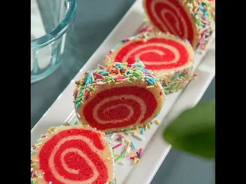 - Place the dough pieces one on top of the other. Start from the end closest to you and roll towards the opposite end. Coat the dough with colored sprinkles and refrigerate it for the next couple of hours.