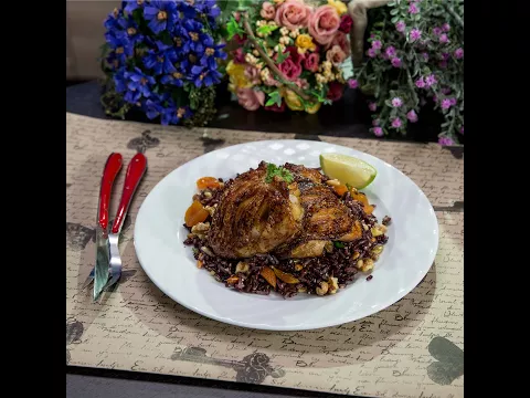 - Place the rice on a plate, serving as a bed for the roasted chicken thighs!