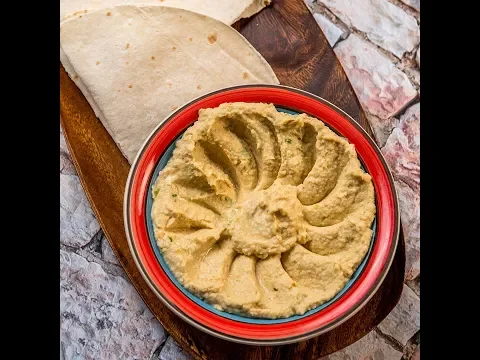 - Add the canned chickpeas, lemon juice, tahini, and a bit of water.