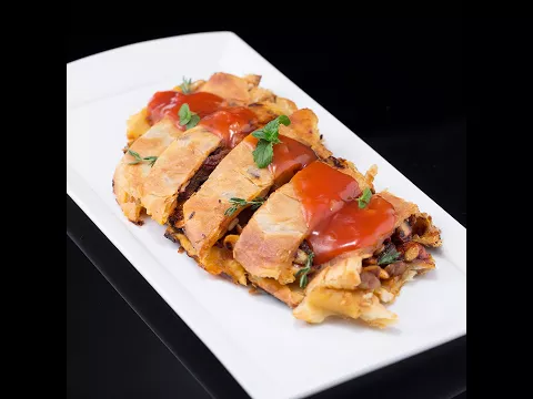 - Spread some flour on your working surface and line up your pastry. Fill it with the mixture, wrap it, and carefully secure it so you don’t lose any of the filling.